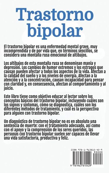 Trastorno bipolar El trastorno bipolar es algo más que cambios de humor: es una enfermedad mental profunda y a menudo incomprendida que puede convertir la vida cotidiana en una montaña rusa emocional de intensos altibajos devastadores. Para quienes la padecen, estos cambios de humor -conocidos como manía y depresión- pueden afectar drásticamente al sueño, la energía, la concentración y la toma de decisiones. Las relaciones, la carrera profesional y el bienestar general pueden verse afectados por este incesante flujo y reflujo. Pero el trastorno bipolar no tiene por qué definir su vida. En esta guía esencial, obtendrá una comprensión más profunda de lo que realmente es el trastorno bipolar, rompiendo los mitos y conceptos erróneos que lo rodean. Le guiaremos a través de los signos y síntomas, los diferentes tipos de trastorno bipolar y cómo lo diagnostican los profesionales de la salud mental. Desde los medicamentos tradicionales hasta las terapias innovadoras y los cambios en el estilo de vida, explorará las diversas opciones de tratamiento disponibles y descubrirá cómo trabajar con su equipo sanitario para encontrar el mejor plan para usted o su ser querido. Este libro ofrece un faro de esperanza, haciendo hincapié en que un diagnóstico bipolar no es el final, sino un nuevo comienzo. Con el tratamiento adecuado, estrategias de autoayuda y el apoyo inquebrantable de los seres queridos, las personas con trastorno bipolar pueden llevar vidas plenas, productivas y alegres. Aprenda consejos prácticos para controlar la enfermedad, desarrollar mecanismos de afrontamiento y crear una red de apoyo que le permita tomar las riendas de su salud mental. Tanto si le acaban de diagnosticar el trastorno bipolar, como si es un ser querido que quiere entenderlo mejor o alguien que busca formas de controlar sus síntomas de manera más eficaz, este libro es su guía completa para navegar por la vida con trastorno bipolar. Es hora de deshacerse del estigma, aceptar el conocimiento y dar el primer paso hacia un futuro más brillante y equilibrado.