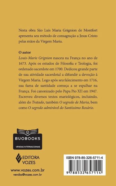 Uma das obras mais tocantes e inspiradoras que existe agora em versão de bolso. Este pequeno livro é um devocionário mariano. Nele São Luís Maria Grignion de Montfort apresenta seu método de consagração a Jesus Cristo pelas mãos da Virgem Maria. Seu objetivo é anunciar às pessoas, em particular às famílias, e todas as nações que o caminho para encontrar Jesus Cristo passa por depositar a confiança no regaço acolhedor da Virgem Maria. Aqui se encontram pensamentos, orações e meditações sobre Nossa Senhora.