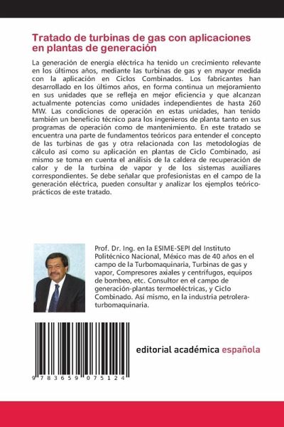 La generación de energía eléctrica ha tenido un crecimiento relevante en los últimos años, mediante las turbinas de gas y en mayor medida con la aplicación en Ciclos Combinados. Los fabricantes han desarrollado en los últimos años, en forma continua un mejoramiento en sus unidades que se refleja en mejor eficiencia y que alcanzan actualmente potencias como unidades independientes de hasta 260 MW. Las condiciones de operación en estas unidades, han tenido también un beneficio técnico para los ingenieros de planta tanto en sus programas de operación como de mantenimiento. En este tratado se encuentra una parte de fundamentos teóricos para entender el concepto de las turbinas de gas y otra relacionada con las metodologías de cálculo así como su aplicación en plantas de Ciclo Combinado, así mismo se toma en cuenta el análisis de la caldera de recuperación de calor y de la turbina de vapor y de los sistemas auxiliares correspondientes. Se debe señalar que profesionistas en el campo de la generación eléctrica, pueden consultar y analizar los ejemplos teórico-prácticos de este tratado.