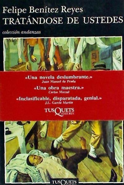 Dotado de una formidable capacidad fabuladora, Felipe Benítez Reyes viene apareciendo regularmente en nuestro catálogo desde 1996, cuando publicamos su excelente poemario El equipaje abierto (Marginales 152), al que siguieron un sorprendente volumen de relatos, Maneras de perder (Andanzas 302) y la novela El novio del mundo (Andanzas 327), que en pocos meses alcanzó tres reimpresiones y una calurosa acogida por parte de la crítica. Era tiempo, pues, de recuperar la novela Tratándose de ustedes , publicada originalmente en 1992, en la que ya daba muestras de un talento narrativo que el tiempo se ha encargado de confirmar. Arruza, un bibliófilo de aspecto decimonónico y razón descarrilada, regenta El Globo, una librería anticuaria, movido por un amor loco a los viejos volúmenes adormecidos, las páginas vencidas por el moho y los antiguos lomos repujados e ilegibles. Junto a él, un cenáculo de clientes asiduos se reúne con regularidad para entretener sus ocios intercambiando historias y narraciones que, como en el mundo de los cuentos orientales, se solapan, se plagian, se reinventan cada vez que uno de los narradores toma la palabra. Pero todo se alterará cuando los seres de ficción -un autómata chino que viaja a través del tiempo, un mago oriental que colecciona lámparas embrujadas, una cabeza parlante, o un espejo encantado- impugnen su condición secundaria, invadan la realidad y conviertan a los protagonistas en seres de ficción. . .
