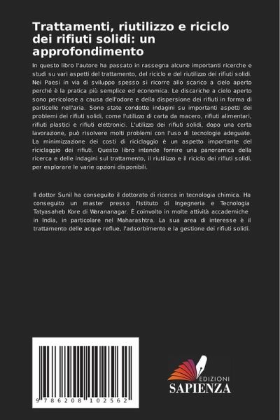 In questo libro l'autore ha passato in rassegna alcune importanti ricerche e studi su vari aspetti del trattamento, del riciclo e del riutilizzo dei rifiuti solidi. Nei Paesi in via di sviluppo spesso si ricorre allo scarico a cielo aperto perché è la pratica più semplice ed economica. Le discariche a cielo aperto sono pericolose a causa dell'odore e della dispersione dei rifiuti in forma di particelle nell'aria. Sono state condotte indagini su importanti aspetti dei problemi dei rifiuti solidi, come l'utilizzo di carta da macero, rifiuti alimentari, rifiuti plastici e rifiuti elettronici. L'utilizzo dei rifiuti solidi, dopo una certa lavorazione, può risolvere molti problemi con l'uso di tecnologie adeguate. La minimizzazione dei costi di riciclaggio è un aspetto importante del riciclaggio dei rifiuti. Questo libro intende fornire una panoramica della ricerca e delle indagini sul trattamento, il riutilizzo e il riciclo dei rifiuti solidi, per esplorare le varie opzioni disponibili.