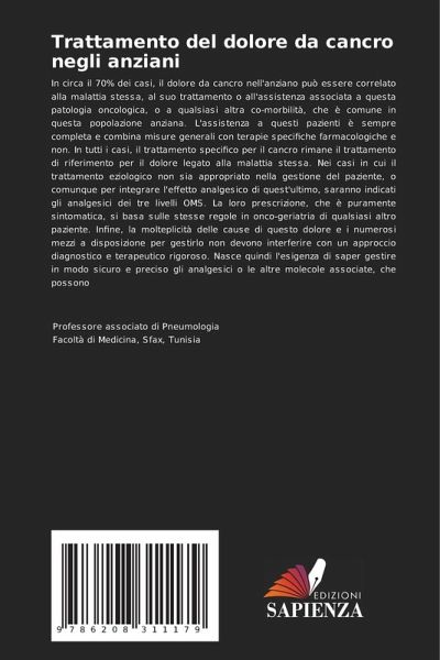 In circa il 70% dei casi, il dolore da cancro nell'anziano può essere correlato alla malattia stessa, al suo trattamento o all'assistenza associata a questa patologia oncologica, o a qualsiasi altra co-morbilità, che è comune in questa popolazione anziana. L'assistenza a questi pazienti è sempre completa e combina misure generali con terapie specifiche farmacologiche e non. In tutti i casi, il trattamento specifico per il cancro rimane il trattamento di riferimento per il dolore legato alla malattia stessa. Nei casi in cui il trattamento eziologico non sia appropriato nella gestione del paziente, o comunque per integrare l'effetto analgesico di quest'ultimo, saranno indicati gli analgesici dei tre livelli OMS. La loro prescrizione, che è puramente sintomatica, si basa sulle stesse regole in onco-geriatria di qualsiasi altro paziente. Infine, la molteplicità delle cause di questo dolore e i numerosi mezzi a disposizione per gestirlo non devono interferire con un approccio diagnostico e terapeutico rigoroso. Nasce quindi l'esigenza di saper gestire in modo sicuro e preciso gli analgesici o le altre molecole associate, che possono