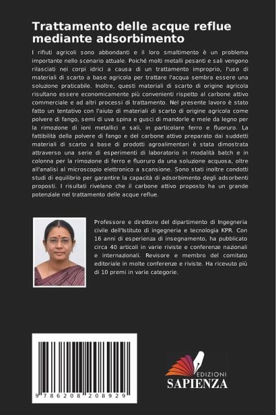 I rifiuti agricoli sono abbondanti e il loro smaltimento è un problema importante nello scenario attuale. Poiché molti metalli pesanti e sali vengono rilasciati nei corpi idrici a causa di un trattamento improprio, l'uso di materiali di scarto a base agricola per trattare l'acqua sembra essere una soluzione praticabile. Inoltre, questi materiali di scarto di origine agricola risultano essere economicamente più convenienti rispetto al carbone attivo commerciale e ad altri processi di trattamento. Nel presente lavoro è stato fatto un tentativo con l'aiuto di materiali di scarto di origine agricola come polvere di fango, semi di uva spina e gusci di mandorle e mele da legno per la rimozione di ioni metallici e sali, in particolare ferro e fluoruro. La fattibilità della polvere di fango e del carbone attivo preparato dai suddetti materiali di scarto a base di prodotti agroalimentari è stata dimostrata attraverso una serie di esperimenti di laboratorio in modalità batch e in colonna per la rimozione di ferro e fluoruro da una soluzione acquosa, oltre all'analisi al microscopio elettronico a scansione. Sono stati inoltre condotti studi di equilibrio per garantire la capacità di adsorbimento degli adsorbenti proposti. I risultati rivelano che il carbone attivo proposto ha un grande potenziale nel trattamento delle acque reflue.