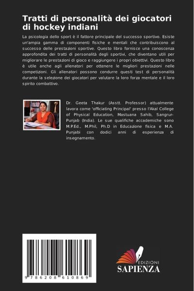La psicologia dello sport è il fattore principale del successo sportivo. Esiste un'ampia gamma di componenti fisiche e mentali che contribuiscono al successo delle prestazioni sportive. Questo libro fornisce una conoscenza approfondita dei tratti di personalità degli sportivi, che diventano utili per migliorare le prestazioni di gioco e raggiungere i propri obiettivi. Questo libro è utile anche agli allenatori per ottenere le migliori prestazioni nelle competizioni. Gli allenatori possono condurre questi test di personalità durante la selezione dei giocatori per valutare la loro forza mentale e il loro spirito combattivo.
