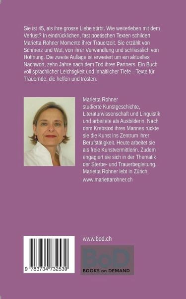 Sie ist 45, als ihre grosse Liebe stirbt. Wie weiterleben mit dem Verlust? In eindrücklichen, fast poetischen Texten schildert Marietta Rohner Momente ihrer Trauerzeit. Sie erzählt von Schmerz und Wut, von ihrer Verwandlung und schliesslich von Hoffnung. Die 2. Auflage ist erweitert um ein aktuelles Nachwort, zehn Jahre nach dem Tod ihres Partners. Ein Buch voll sprachlicher Leichtigkeit und inhaltlicher Tiefe - Texte für Trauernde, die helfen und trösten.