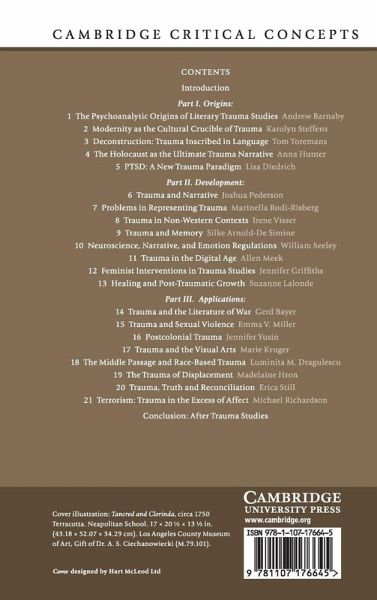 Introduction Part I. Origins: 1. The psychoanalytic origins of literary trauma studies Andrew Barnaby 2. Modernity as the cultural crucible of trauma Karolyn Steffens 3. Deconstruction: trauma inscribed in language Tom Toremans 4. The Holocaust as the ultimate trauma narrative Anna Hunter 5. Ptsd: a new trauma paradigm Lisa Diedrich Part II. Development: 6. Trauma and narrative Joshua Pederson 7. Problems in representing trauma Marinella Rodi-Risberg 8. Trauma in non-Western contexts Irene Visser 9. Trauma and memory Silke Arnold-De Simine 10. Neuroscience, narrative, and emotion regulations William Seeley 11. Trauma in the digital age Allen Meek 12. Feminist interventions in trauma studies Jennifer Griffiths 13. Healing and post-traumatic growth Suzanne Lalonde Part III. Applications: 14. Trauma and the literature of war Gerd Bayer 15. Trauma and sexual violence Emma V. Miller 16. Postcolonial trauma Jennifer Yusin 17. Trauma and the visual arts Marie Krüger 18. The middle passage and race-based trauma Luminita M. Dragulescu 19. The trauma of displacement Madelaine Hron 20. Trauma, truth and reconciliation Erica Still 21. Terrorism: trauma in the excess of affect Michael Richardson Conclusion: after trauma studies.
