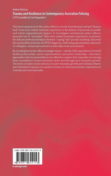 By revealing how police officers manage trauma-outside of the expectations of mental health professionals, union representatives and police leadership-innovative approaches and recommendations are offered to support first responders in moving from assumptions of post-traumatic stress and through post-traumatic growth. The book considers recent advances in post-traumatic growth and resilience theory and reinterpretsexposure in a positive context, as well as preventative experiences in Australia and internationally.