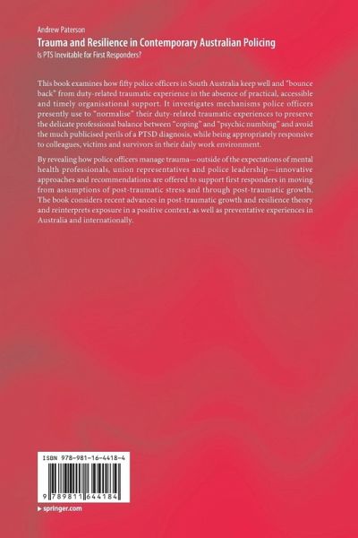 By revealing how police officers manage trauma-outside of the expectations of mental health professionals, union representatives and police leadership-innovative approaches and recommendations are offered to support first responders in moving from assumptions of post-traumatic stress and through post-traumatic growth. The book considers recent advances in post-traumatic growth and resilience theory and reinterpretsexposure in a positive context, as well as preventative experiences in Australia and internationally.