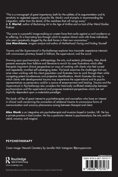 Drawing upon psychoanalysis, anthropology, the arts, and esoteric philosophy, Alex Monk presents examples from folklore and literature to enrich his case illustrations which offer therapists important clinical perspectives on ways of working with clients who feel cursed and repeatedly manifest self-sabotaging states. The book examines the challenges that can arise when working with this client population and illustrates how to work through them while navigating potent transferences and projective identifications. Monk illustrates the way in which clients with developmental trauma may experience the supernatural and its psychic representatives as persecutory and/or a source of empowerment and healing. Trauma and the Supernatural in Psychotherapy also considers the historically conflicted relationship between psychoanalysis and the supernatural and proposes treatment perspectives which are not implicitly dependent upon a materialist paradigm.