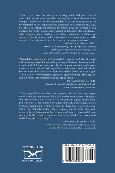 Trauma and the Therapist explores the role and experience of the therapist in the therapeutic relationship by examining countertransference (the therapist's response to the client) and vicarious traumatization (the therapist's response to the stories of abuse told by client after client). Therapists' awareness of attunement to these processes will inform their therapeutic interventions, enrich their work, and protect themselves and their clients. The authors also offer many strategies for avoiding the countertransference vicarious traumatization cycle. While the topic is specific, the authors' approach is broad, drawing from and synthesizing the diverse literature on countertransference and trauma theory. Utilizing the sophistication of psychoanalytic theory and the specificity of contemporary trauma theory, Pearlman and Saakvitne present their approach clearly and compellingly. This book will help all therapists treating incest survivors feel less isolated and traumatized by their work, and give them a renewed appreciation of its rewards.