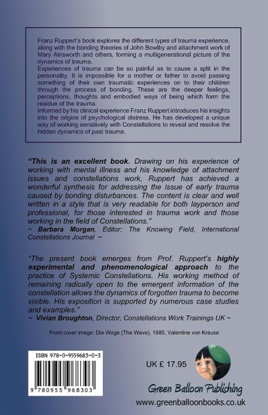 Professor Dr Franz Ruppert, is Professor of Psychology at the University of Applied Sciences in Munich, Germany. He gained his PhD in Work and Organisational Psychology at the Technical University of Munich in 1985.Since 1995 he has specialised in psychotherapeutic work, with a particular focus on the aetiology of severe mental disorders. This has led him to an in depth study of attachment processes and trauma and the resulting impact of early traumatisation on the infant. His publications include: Verwirrte Seelen (2002, Kosel, Munich), (Confused Souls, not available in English), followed by four books translated from German into English: Trauma, Bonding & Family Constellations: Understanding and Healing Injuries of the Soul (2008), Splits in the Soul: Integrating Traumatic Experiences (2011), Symbiosis & Autonomy: Symbiotic Trauma and Love Beyond Entanglements (2012), Trauma, Fear and Love; How the Constellation of the Intention Supports Healthy Autonomy (2014) all published in English by Green Balloon Publishing, Steyning, UK.Ruppert teaches in Germany and many other countries including Brazil, Canada, Britain, Ireland, Italy, Russia, Netherlands, Poland, Portugal, Romania, Turkey and Spain, furthering his insights into the deeper transgenerational effects of trauma in different cultures, and researching the methodology of constellations as a means of better understanding the effects and healing of trauma.