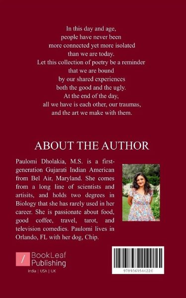Paulomi Dholakia, M.S. is a first- generation Gujarati Indian American from Bel Air, Maryland. She comes from a long line of scientists and artisits, and holds two degrees in Biology that she has rarely used in her career. She is passionate about food, good coffee, travel, tarot, and television comedies. Paulomi lives in Orlando, FL with her dog, Chip.