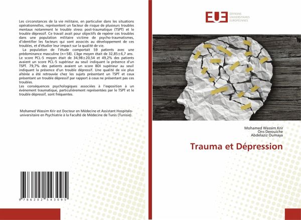 Les circonstances de la vie militaire, en particulier dans les situations opérationnelles, représentent un facteur de risque de plusieurs troubles mentaux notamment le trouble stress post-traumatique (TSPT) et le trouble dépressif. Ce travail avait pour objectifs de repérer ces troubles dans une population militaire victime de psycho-traumatismes, d'identifier les facteurs qui sont associés au développement de ces troubles, et d'étudier leur impact sur la qualité de vie. La population de l'étude comportait 59 patients avec une prédominance masculine (n=58). L'âge moyen était de 32,85±6,7 ans. Le score PCL-5 moyen était de 34,98±20,54 et 49,2% des patients avaient un score PCL-5 supérieur au seuil indiquant la présence d'un TSPT. 79,7% des patients avaient un score BDI supérieur au seuil indiquant la présence d'un trouble dépressif. Une qualité de vie plus altérée a été retrouvée chez les sujets présentant un TSPT et ceux présentant un trouble dépressif par rapport à ceux ne présentant pas ces troubles. Les conséquences psychologiques associées à l'exposition à un événement traumatique, particulièrement représentées par le TSPT et le trouble dépressif, sont fréquentes.