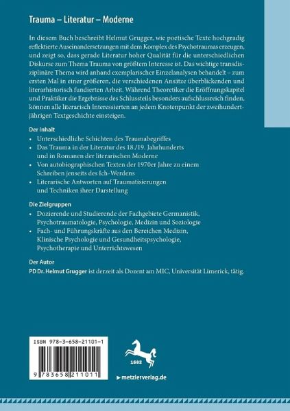 In diesem Buch beschreibt Helmut Grugger, wie poetische Texte hochgradig reflektierte Auseinandersetzungen mit dem Komplex des Psychotraumas erzeugen, und zeigt so, dass gerade Literatur hoher Qualität für die unterschiedlichen Diskurse zum Thema Trauma von höchstem Interesse ist. Das wichtige transdisziplinäre Thema wird anhand exemplarischer Einzelanalysen behandelt - zum ersten Mal in einer größeren, die verschiedenen Ansätze überblickenden und literarhistorisch fundierten Arbeit. Während Theoretiker die Eröffnungskapitel und Praktiker die Ergebnisse des Schlussteils besonders aufschlussreich finden, können alle literarisch Interessierten an jedem Knotenpunkt der zweihundertjährigen Textgeschichte einsteigen.