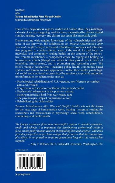 Demonstrating wide-ranging knowledge of the vulnerabilities and resilience of war survivors, the collaborators on Trauma Rehabilitation after War and Conflict analyze successful rehabilitative processes and intervention programs in conflict-affected areas of the world. Its dual focus on individual and community healing builds on the concept of the protective "trauma membrane," a component crucial to coping and healing, to humanitarian efforts (though one which is often passed over in favor of rebuilding infrastructure), and to promoting and sustaining peace. The book's multiple perspectives-including public health, community-based systems, and trauma-focused approaches-reflect the complex psychological, social, and emotional stresses faced by survivors, to provide authoritative information on salient topics suchas: