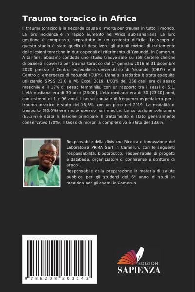 Il trauma toracico è la seconda causa di morte per trauma in tutto il mondo. La loro incidenza è in rapido aumento nell'Africa sub-sahariana. La loro gestione è complessa, soprattutto in un contesto difficile. Lo scopo di questo studio è stato quello di descrivere gli attuali metodi di trattamento delle lesioni toraciche in due ospedali di riferimento di Yaoundé, in Camerun. A tal fine, abbiamo condotto uno studio trasversale su 358 cartelle cliniche di pazienti ricoverati per trauma toracico dal 1° gennaio 2016 al 31 dicembre 2020 presso il Centro ospedaliero universitario di Yaoundé (CHUY) e il Centro di emergenza di Yaoundé (CURY). L'analisi statistica è stata eseguita utilizzando SPSS 23.0 e MS Excel 2019. L'83% dei 358 casi era di sesso maschile e il 17% di sesso femminile, con un rapporto tra i sessi di 5:1. L'età mediana era di 30 anni [23:00]. L'età mediana era di 30 [23-40] anni, con estremi di 1 e 96 anni. Il tasso annuale di frequenza ospedaliera per il trauma toracico è stato del 16,5%, con un picco nel 2019. La modalità di trasporto (93,6%) era molto spesso non medica. La contusione polmonare (65,3%) è stata la lesione principale. Il trattamento è stato generalmente conservativo (70%). Il tasso di mortalità complessivo è stato del 13,6%.