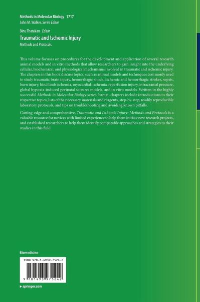 This volume focuses on procedures for the development and application of several research animal models and in vitro methods that allow researchers to gain insight into the underlying cellular, biochemical, and physiological mechanisms involved in traumatic and ischemic injury. The chapters in this book discuss topics, such as animal models and techniques commonly used to study traumatic brain injury, hemorrhagic shock, ischemic and hemorrhagic strokes, sepsis, burn injury, hind limb ischemia, myocardial-ischemia-reperfusion injury, intracranial pressure, global hypoxia-induced perinatal seizures models, and in vitro models. Written in the highly successful Methods in Molecular Biology series format, chapters include introductions to their respective topics, lists of the necessary materials and reagents, step-by-step, readily reproducible laboratory protocols, and tips on troubleshooting and avoiding known pitfalls.