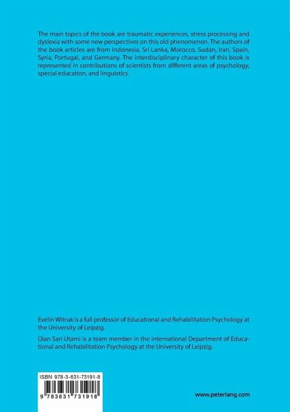 The main topics of the book are traumatic experiences, stress processing and dyslexia with some new perspectives on this old phenomenon. The authors of the book articles are from Indonesia, Sri Lanka, Morocco, Sudan, Iran, Spain, Syria, Portugal, and Germany. The interdisciplinary character of this book is represented in contributions of scientists from different areas of psychology, special education, and linguistics.