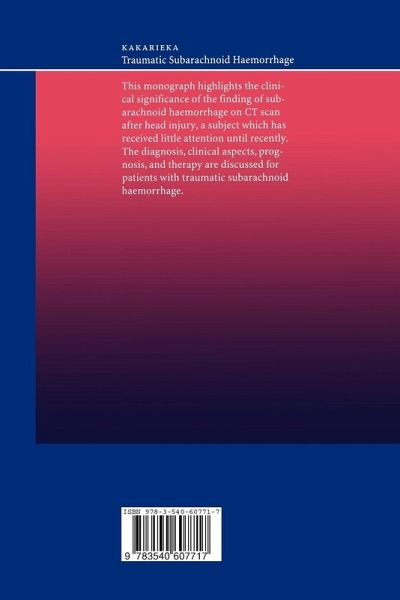In the last few decades an abundance of publications have accumu lated on the clinical implications of subarachnoid haemorrhage (SAH) due to aneurysmal rupture. In contrast, until about 6 years ago, SAH due to traumatic head injury mainly, if not only, drew the attention of the forensic pathologist. In their analysis of the data from the American Traumatic Coma Data Bank, Eisenberg et al. concluded in 1990 that the presence of SAH on the initial computed tomographic scan (tSAH) had an un favourable effect on outcome. This conclusion has since been con firmed in other series. Dr. Kakarieka, the…mehr