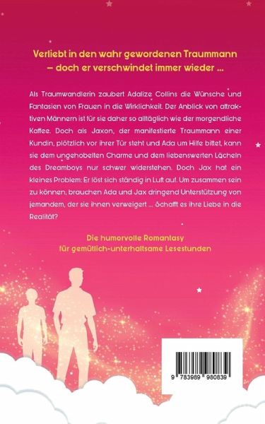 Verliebt in den wahr gewordenen Traummann – doch er verschwindet immer wieder … Die humorvolle Romantasy für gemütlich-unterhaltsame Lesestunden Als Traumwandlerin zaubert Adalize Collins die Wünsche und Fantasien von Frauen in die Wirklichkeit. Der Anblick von attraktiven Männern ist für sie daher so alltäglich wie der morgendliche Kaffee. Doch als Jaxon, der manifestierte Traummann einer Kundin, plötzlich vor ihrer Tür steht und Ada um Hilfe bittet, kann sie dem ungehobelten Charme und dem liebenswerten Lächeln des Dreamboys nur schwer widerstehen. Doch Jax hat ein kleines Problem: Er löst sich ständig in Luft auf. Um zusammen sein zu können, brauchen Ada und Jax dringend Unterstützung von jemandem, der sie ihnen verweigert … Schafft es ihre Liebe in die Realität? Dies ist eine überarbeitete Neuausgabe des bereits erschienenen Titels Dream Men Come True. Erste Leser:innenstimmen „Die Idee von Traumwandlerinnen hat mich sofort angesprochen und die Umsetzung meine Erwartungen übertroffen!" „Unterhaltsame Fantasy trifft romantische Liebesgeschichte!" „Humorvoll und locker geschrieben, sodass man nur so durch die Seiten fliegt." „Originell, spannend, witzig, gefühlvoll – sehr empfehlenswerte Romantasy!"