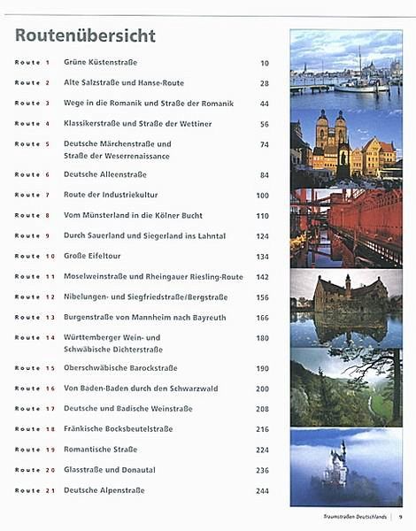 Speziell produzierte Tourenkarten zeigen den Verlauf der Strecke, weisen auf Lage und Art der Sehenswürdigkeiten hin und machen Vorschläge für lohnenswerte Abstecher. "Traumstraßen Deutschlands" ist ein Kombination aus Bildband, Reiseführer und Atlas.