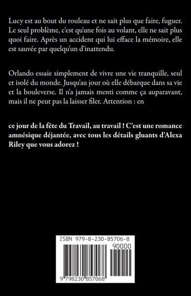 Lucy est au bout du rouleau et ne sait plus que faire, fuguer. Le seul problème, c'est qu'une fois au volant, elle ne sait plus quoi faire. Après un accident qui lui efface la mémoire, elle est sauvée par quelqu'un d'inattendu. Orlando essaie simplement de vivre une vie tranquille, seul et isolé du monde. Jusqu'au jour où elle débarque dans sa vie et la bouleverse. Il n'a jamais menti comme ça auparavant, mais il ne peut pas la laisser filer. Attention : en ce jour de la fête du Travail, au travail ! C'est une romance amnésique déjantée, avec tous les détails gluants d'Alexa Riley que vous adorez !
