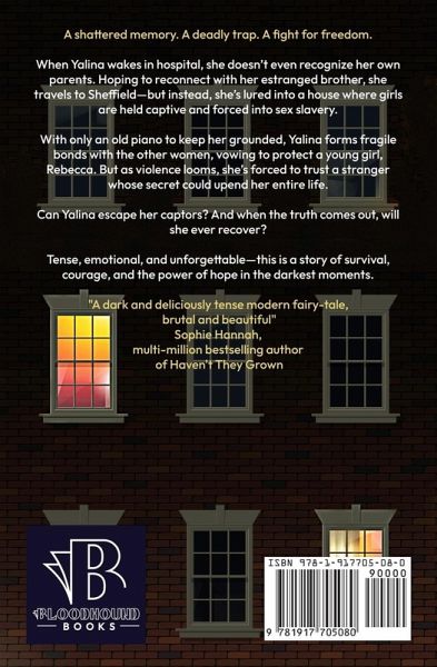 A shattered memory. A deadly trap. A fight for freedom. When Yalina wakes in hospital, she doesn't even recognize her own parents. Hoping to reconnect with her estranged brother, she travels to Sheffield-but instead, she's lured into a house where girls are held captive and forced into sex slavery. With only an old piano to keep her grounded, Yalina forms fragile bonds with the other women, vowing to protect a young girl, Rebecca. But as violence looms, she's forced to trust a stranger whose secret could upend her entire life. Can Yalina escape her captors? And when the truth comes out, will she ever recover? Tense, emotional, and unforgettable-this is a story of survival, courage, and the power of hope in the darkest moments. "A dark and deliciously tense modern fairy-tale, brutal and beautiful" - Sophie Hannah, multi-million bestselling author of Haven't They Grown