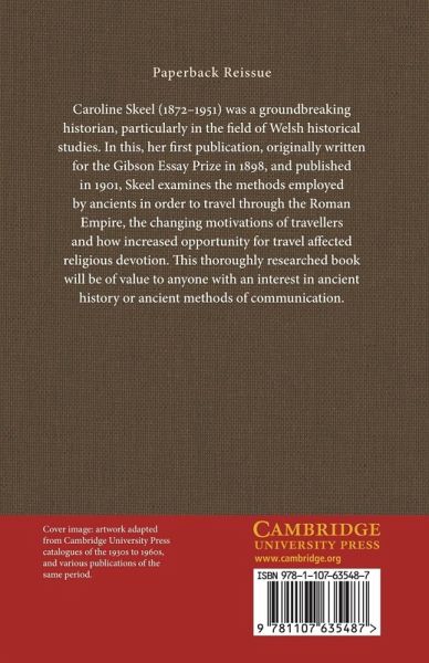 Caroline Skeel (1872-1951) was a groundbreaking historian, particularly in the field of Welsh historical studies. In this, her first publication, originally written for the Gibson Essay Prize in 1898, and published in 1901, Skeel examines the methods employed by ancients in order to travel through the Roman Empire, the changing motivations of travellers and how increased opportunity for travel affected religious devotion. This thoroughly researched book will be of value to anyone with an interest in ancient history or ancient methods of communication.