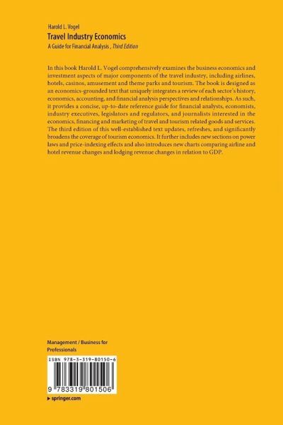 In this book Harold L. Vogel comprehensively examines the business economics and investment aspects of major components of the travel industry, including airlines, hotels, casinos, amusement and theme parks and tourism. The book is designed as an economics-grounded text that uniquely integrates a review of each sector's history, economics, accounting, and financial analysis perspectives and relationships. As such, it provides a concise, up-to-date reference guide for financial analysts, economists, industry executives, legislators and regulators, and journalists interested in the economics, financing and marketing of travel and tourism related goods and services. The third edition of this well-established text updates, refreshes, and significantly broadens the coverage of tourism economics. It further includes new sections on power laws and price-indexing effects and also introduces new charts comparing airline and hotel revenue changes and lodging revenue changes in relation to GDP.