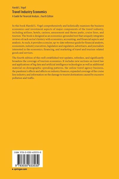 In this book Harold L. Vogel comprehensively and holistically examines the business economics and investment aspects of major components of the travel industry, including airlines, hotels, casinos, amusement and theme parks, cruise lines, and tourism. The book is designed as an economics-grounded text that uniquely integrates reviews of each sector's history with economics, accounting, and financial aspects and analysis. As such, it provides a concise, up-to-date reference guide for financial analysts, economists, industry executives, legislators and regulators, advertisers, and journalists interested in the economics, financing, and marketing of travel and tourism-related goods and services.