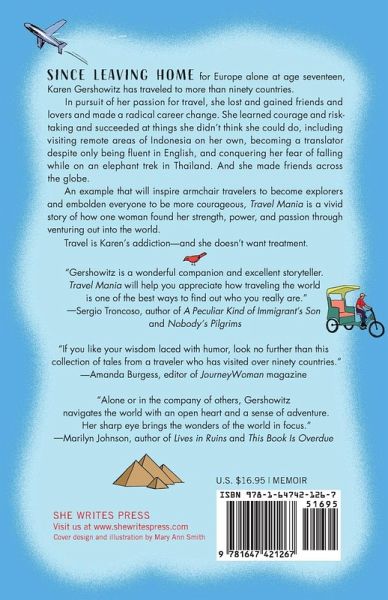 Karen Gershowitz grew up in Manhattan. During her long career as a marketing researcher, she crisscrossed the globe, conducting thousands of focus groups and interviews. While traveling, she used her interview skills in ordinary conversations to get strangers to open up and connect with her. Her work received an honorable mention at the 2018 Oregon Writer’s Conference. Travel Mania is her first book. She lives in New York, New York.