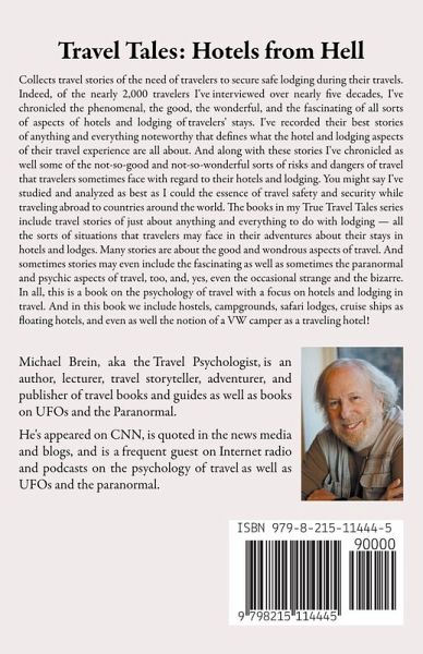 Travel Tales: Hotels from Hell Is a collection of travel stories of one of the most basic experiences and needs of travelers, namely, securing safe and secure lodging during their travels. Indeed, of the nearly 2,000 travelers whom I have interviewed over nearly five decades, I've collected and chronicled the phenomenal, the good, the wonderful, and the fascinating of all sorts of aspects of hotels and lodging of travelers' stays. I've recorded as well for posterity their best stories in the form of ebooks, paperbacks, and audiobooks, just about anything and everything noteworthy that defines what the hotel and lodging aspects of their travel experience are all about. And along with these stories I've chronicled as well some of the not-so-good and not-so-wonderful sorts of risks and dangers of travel that travelers sometimes face with regard to their hotels and lodging. You might say I've studied and analyzed as best as I could the essence of travel safety and security while traveling abroad to countries around the world. The books in my True Travel Tales series include travel stories of just about anything and everything to do with lodging - all the sorts of situations that travelers may face in their adventures about their stays in hotels and lodges. Many stories are about the good and wondrous aspects of travel. And sometimes stories may even include the fascinating as well as sometimes the paranormal and psychic aspects of travel, too, and, yes, even the occasional strange and the bizarre. In all, this is a book on the psychology of travel with a focus on hotels and lodging in travel. And in this look at hotels and lodging in travel, we take a somewhat broader expanded look, and in some cases, we include hostels, campgrounds, safari lodges, cruise ships as floating hotels, and even as well the notion of a VW camper as a traveling hotel!