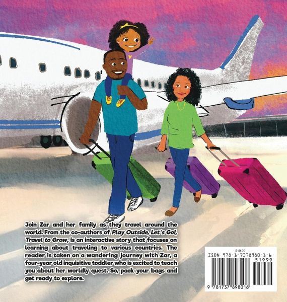 Join Zar and her family as they travel around the world. From the co-authors of Play Outside, Let's Go!, Travel to Grow, is an interactive story that focuses on learning about traveling to various countries. The reader is taken on a wandering journey with Zar, a four-year old inquisitive toddler who is excited to teach you about her worldly quest. So, pack your bags and get ready to explore.