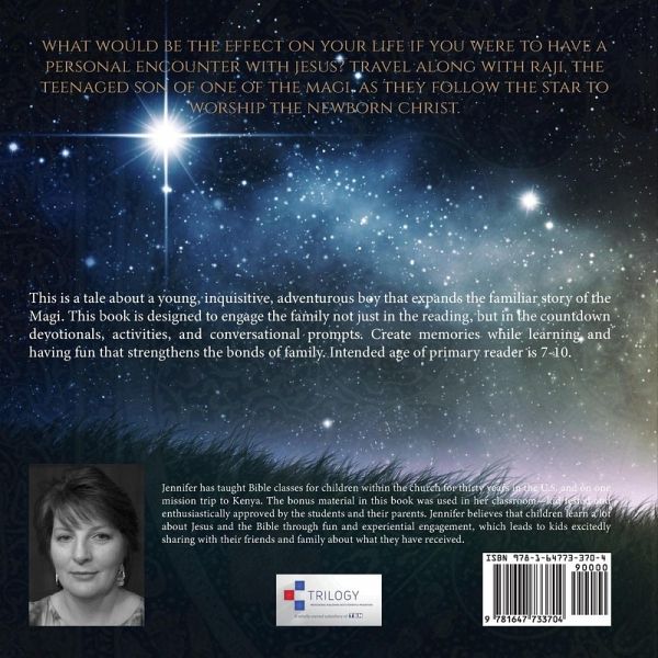 What would be the effect on your life if you were to have a personal encounter with Jesus? Travel along with Raji, the teenaged son of one of the Magi, as they follow the star to worship the newborn Christ. This is a tale about a young, inquisitive, adventurous boy that expands the familiar story of the Magi. This book is designed to engage the family not just in the reading, but in the countdown devotionals, activities, and conversational prompts. Create memories while learning and having fun that strengthens the bonds of family. Intended age of primary reader is 7-10.