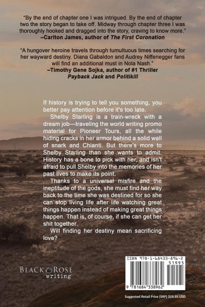If history is trying to tell you something, you better pay attention before it's too late. Shelby Starling is a train-wreck with a dream job-traveling the world writing promo material for Pioneer Tours, all the while hiding cracks in her armor behind a solid wall of snark and Chianti. But there's more to Shelby Starling than she wants to admit. History has a bone to pick with her, and isn't afraid to pull Shelby into the memories of her past lives to make its point. Thanks to a universal misfire and the ineptitude of the gods, she must find her way back to the time she was destined for so she can stop living life after life watching great things happen instead of making great things happen. That is, of course, if she can get her shit together. Will finding her destiny mean sacrificing love?