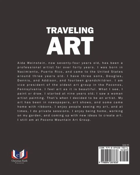 Aida Weinstein, now seventy-four years old, has been a professional artist for over forty years. I was born in Nacimiento, Puerto Rico, and came to the United States around three years old. I have three sons, Douglas, Dennis, and Addison, and fourteen grandchildren. I am vice president of the oldest art group in the Poconos, Pennsylvania. I feel art as it is beautiful. What I see, I paint or draw. I started at nine years old; I saw a woman artist painting. That's when I decided to be an artist. My art has been in newspapers, art shows, and some came home with ribbons. I enjoy people seeing my art, and at times, I do private sessions. I enjoy being home, working on my garden, and coming up with new ideas to create art. I still am at Pocono Mountain Art Group.