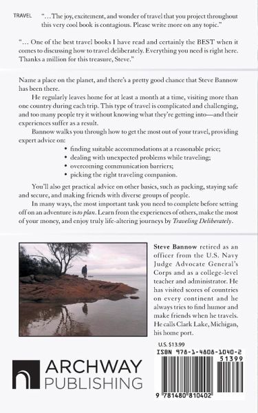 Name a place on the planet, and there's a pretty good chance that Steve Bannow has been there. He regularly leaves home for at least a month at a time, visiting more than one country during each trip. This type of travel is complicated and challenging, and too many people try it without knowing what they're getting into-and their experiences suffer as a result. Bannow walks you through how to get the most out of your travel, providing expert advice on: finding suitable accommodations at a reasonable price; dealing with unexpected problems while traveling; overcoming communication barriers; picking the right traveling companion. You'll also get practical advice on other basics, such as packing, staying safe and secure, and making friends with diverse groups of people. In many ways, the most important task you need to complete before setting off on an adventure is to plan. Learn from the experiences of others, make the most of your money, and enjoy truly life-altering journeys by Traveling Deliberately.