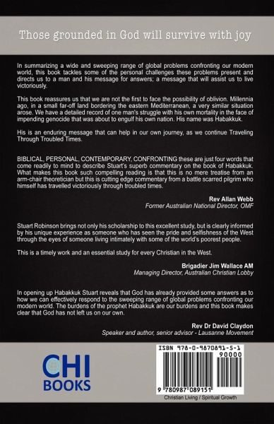 Released from Fear through Faith With Habakkuk. In summarizing a wide and sweeping range of global problems confronting our modern world, this book tackles some of the personal challenges these problems present and directs us to a man and his message for answers; a message that will assist us to live victoriously. This book reassures us that we are not the first to face the possibility of oblivion. Millenia ago, in a small far-off land bordering the eastern Mediterranean, a very similiar situation arose. We have a detailed record of one man's struggle with his own mortality in the face of impending genocide that was about to engulf his own nation. His name was Habakkuk. His is an enduring message that can help in our own journey, as we continue Traveling Through Troubled Times. Stuart Robinson brings not only his scholarship to this excellent study, but is clearly informed by his unique experience as someone who has seen the pride and selfishness of the West through the eyes of someone living intimately with some of the world's poorest people.