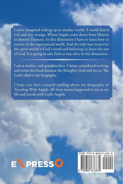 I never imagined waking up to another world. A world that is evil and very strange. Where Angels come down from Heaven to destroy Demons. In this dimension I have to learn how to survive in the supernatural world. And the only way to survive the spirit world is God's word and believing in Jesus the son of God. It is going to take faith to stay alive in this dimension. ¿¿¿I am a mother and grandmother. I never considered writing, and wrote this book because the Almighty God told me to. The Lord called it my biography. I hope you have enjoyed reading about my biography of Traveling With Angels. All these stories happened to me in my life and travels with God's Angels.