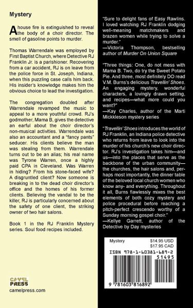 A house fire is extinguished to reveal the body of a choir director. The smell of gasoline points to murder. Thomas Warrendale was employed by First Baptist Church, where Detective RJ Franklin Jr. is a parishioner. Recovering from a car accident, RJ is on leave from the police force in St. Joseph, Indiana, when this puzzling case calls him back. His insider's knowledge makes him the obvious choice to lead the investigation. The congregation doubled after Warrendale revamped the music to appeal to a more youthful crowd. RJ's godmother, Mama B, gives the detective an earful about the choir director's non-musical activities. Warrendale was also an accountant and a "fancy pants" seducer. His clients believe the man was stealing from them. Warrendale turns out to be an alias; his real name was Tyrone Warren, once a highly paid CPA in Cleveland. Was Warren in hiding? From his stone-faced wife? A disgruntled client? Now someone is breaking in to the dead choir director's office and the homes of his former clients. Believing the vandal to be the killer, RJ is particularly concerned about the safety of one client, the striking owner of two hair salons.