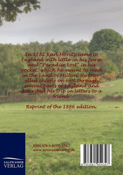 In 1782 Karl Moritz came to England with little in his purse and Paradise Lost in his pocket, which he meant to read in the Land of Milton. He travelled chiefly on foot through several parts of England and described his trip in letters to a friend. Reprint of the 1886 edition.