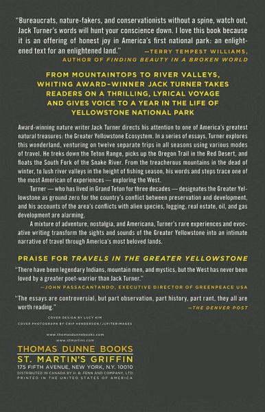Award-winning nature writer Jack Turner directs his attention to one of America's greatest natural treasures: the Greater Yellowstone Ecosystem. In a series of essays, Turner explores this wonderland, venturing on twelve separate trips in all seasons using various modes of travel. He treks down the Teton Range, picks up the Oregon Trail in the Red Desert, and floats the South Fork of the Snake River. Along the way he encounters a variety of wildlife: moose, elk, trout, and wolves. From the treacherous mountains in the dead of winter to lush river valleys in the height of fishing season, his words and steps trace one of the most American of experiences-exploring the West. Turner-who has lived in Grand Teton for three decades-designates the Greater Yellowstone as ground zero for the country's conflict between preservation and development, and his accounts of the area's conflicts with alien species, logging, real estate, oil, and gas development are alarming. A mixture of adventure, nostalgia, and Americana, Turner's rare experiences and evocative writing transform the sights and sounds of Greater Yellowstone into an intimate narrative of travel through America's most beloved lands.