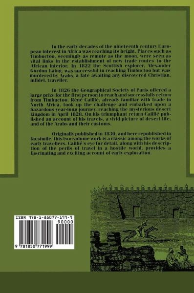 In the early decades of the nineteenth century European interest in Africa was reaching its height. Places such as Timbuctoo, seemingly as remote as the moon, were seen as vital links in the establishment of new trade routes to the African interior. In 1822 the Scottish explorer, Alexander Gordon Laing was successful in reaching Timbuctoo but was murdered by Arabs, a fate awaiting any discovered Christian, infidel or traveller. In 1826 the Geographical Society of Paris offered a large prize for the first person to reach and successfully return from Timbuctoo. Rene Caillie, already familiar with trade in North Africa, accepted up the challenge and embarked upon a hazardous year-long journey, reaching the mysterious desert kingdom in April 1828. On his triumphant return Caillie published an account of his travels, a vivid picture of desert life, and the Arabs and their customs. Originally published in 1830, and here republished in facsimile, this two-volume work is a classic among the works of early travellers. Caillie's eye for detail, along with his description of the perils of travel in a hostile world, provides a fascinating and exciting account of early exploration.
