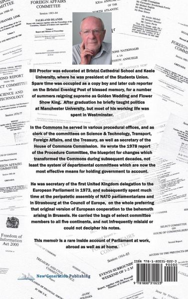 Bill Proctor worked in the House of Commons for thirty-six years at the latter end of the last century. He served in various procedural offices, and as clerk of the committees on Science & Technology, Transport, Foreign Affairs, and the Treasury, as well as secretary of the House of Commons Commission. He wrote the 1978 report of the Procedure Committee, rightly described by the Guardian as an agenda for the rest of the century, which became the blueprint for changes which transformed the Commons during subsequent decades, not least of which was the system of departmental committees in both Houses which are now the most effective means for holding governments of all colours to account. He was secretary of the first United Kingdom delegation to the European Parliament in 1973, and subsequently spent much time at the peripatetic assembly of NATO parliamentarians and in Strasbourg at the Council of Europe. On the whole he preferred that original version of European cooperation to the behemoth arising in Brussels. He carried the bags of select committee members to all five continents, but often could neither decipher his notes nor even find them amidst the socks on his return. In this book Bill Proctor describes the generally happy and fruitful, but occasionally fragile, relationship between the professionally neutral Officers of the House of Commons and their properly partisan Members, an account which involves many hundreds of hearings, and many scores of reports, but also much travel in Europe, as well as chasing revolutionaries in the Caribbean, resisting the charms of hookers from Arusha to Boston, strap-hanging by air to Hanoi, pushing wheelchairs across Manhattan, consuming much of the KGB's company vodka, and carrying birthday cards across the green line in Cyprus. This memoir is a rare insight into how Parliament really works, abroad as well as at home.