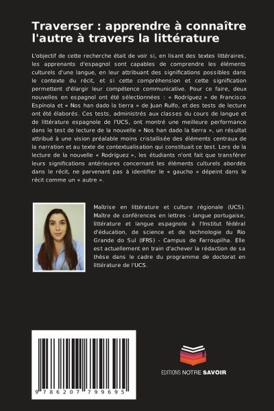 L'objectif de cette recherche était de voir si, en lisant des textes littéraires, les apprenants d'espagnol sont capables de comprendre les éléments culturels d'une langue, en leur attribuant des significations possibles dans le contexte du récit, et si cette compréhension et cette signification permettent d'élargir leur compétence communicative. Pour ce faire, deux nouvelles en espagnol ont été sélectionnées : « Rodríguez » de Francisco Espínola et « Nos han dado la tierra » de Juan Rulfo, et des tests de lecture ont été élaborés. Ces tests, administrés aux classes du cours de langue et de littérature espagnole de l'UCS, ont montré une meilleure performance dans le test de lecture de la nouvelle « Nos han dado la tierra », un résultat attribué à une vision préalable moins cristallisée des éléments centraux de la narration et au texte de contextualisation qui constituait ce test. Lors de la lecture de la nouvelle « Rodríguez », les étudiants n'ont fait que transférer leurs significations antérieures concernant les éléments culturels abordés dans le récit, ne parvenant pas à identifier le « gaucho » dépeint dans le récit comme un « autre ».