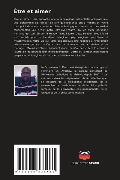 Être et aimer: Une approche phénoménologique existentielle présente une vue d'ensemble de l'amour en tant qu'expérience entre l'Amant et l'Aimé d'un point de vue existentiel et phénoménologique. L'amour est une réalité fondamentale qui définit notre être-avec-l'autre. La vie d'une personne humaine est centrée sur la relation avec l'autre. Cette relation avec l'Autre est cruciale pour le bien-être biologique, psychologique, psychique et métaphysique. Notre vie sur terre est toujours une réponse à l'interaction relationnelle qui se manifeste dans la dimension de la relation et du mariage. L'Amant et l'Aimé répondent d'une manière particulière l'un envers l'autre en découvrant leur interdépendance. L'être et l'amour manifestent l'aspiration ontologique de notre être intérieur vers l'autre.