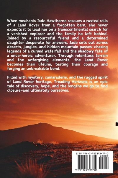 When mechanic Jade Hawthorne rescues a rusted relic of a Land Rover from a forgotten barn, she never expects it to lead her on a transcontinental search for a vanished explorer and the family he left behind. Joined by a resourceful friend and a determined daughter desperate for answers, Jade sets out across deserts, jungles, and hidden mountain passes-chasing legends of a cursed waterfall and the shadowy fate of a once-heroic adventurer. Through relentless terrain and the unforgiving elements, the Land Rover becomes their lifeline, testing their courage and forging an unbreakable bond. Filled with mystery, camaraderie, and the rugged spirit of Land Rover heritage, Treading Horizons is an epic tale of discovery, hope, and the lengths we go to find closure-and ultimately ourselves.