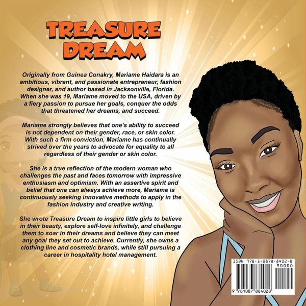 The story is based on Treasure, a young girl with dark skin complexion and short kinky hair . Growing up she admires her mom who is a doctor, idolizes Oprah Winfrey, and dreams of being a successful entrepreneur. But first, she is made to hate herself and despise how she looks until her mother helps her redeem herself and an almost shattered dream. Read and learn along with her as she learns that it is ok to be different as all humans are unique and special. There will always be people that discourage and stop you from reaching your goals . However you should never give up on your dreams based on what people say about you. This story encourages young children, that they can achieve success in life without adapting to a new culture or changing their skin complexion.