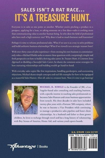 Sales Isn't a Rat Race...It's a Treasure Hunt. The question is...how do you get to the treasure? With over thirty years of sales experience-from owning his own business to commission-only roles-Michael Hinkle shares the mindsets and practices he's used to cultivate a multimillion-dollar sales career. With a refreshingly straightforward and simple perspective on how to build a thriving sales career, he lays out the common-sense strategies for how nurturing relationships and building wealth go hand-in-hand. In Treasure Hunt: A Common-Sense Approach to Building a Successful Sales Career, you'll learn: ¿ The best practices for establishing a long-term sales career ¿ How to become a motivated Sales Hunter ¿ How to handle your first impression with a prospect ¿ How to bypass the "sales wall" put up by prospects ¿ How to build rapport with both gatekeepers and decision makers ¿ How to develop the kind of trust which translates to deals ¿ How to navigate setbacks, mistakes, and disappointments ¿ How to build your personal brand and reputation as a problem-solver Filled with engaging insights and real-life examples, Treasure Hunt guides you in a journey to make the simple mental and tactical shifts to cultivate sales success. Inside these pages are the common-sense tools to transform the average "salesperson" into a trusted expert who solves problems for prospects.