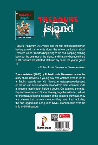 "Squire Trelawney, Dr. Livesey, and the rest of these gentlemen having asked me to write down the whole particulars about Treasure Island, from the beginning to the end, keeping nothing back but the bearings of the island, and that only because there is still treasure not yet lifted, I take up my pen in the year of grace 17-" ― Robert Louis Stevenson, Treasure Island Treasure Island (1883) by Robert Louis Stevenson relates the story of Jim Hawkins, a young boy who watches over an inn at an English seaside town with his mother just as pirates descend on the inn. Jim and his mother escape from them when Jim finds a treasure map hidden inside a pouch. On attaining the map, Squire Trelawney and Doctor Livesey, together with Jim, set sail for the treasure island in search of the treasure. However, they are unaware that the crew members they have hired, including the one-legged man Long John Silver, intend to take over the ship and the treasure.